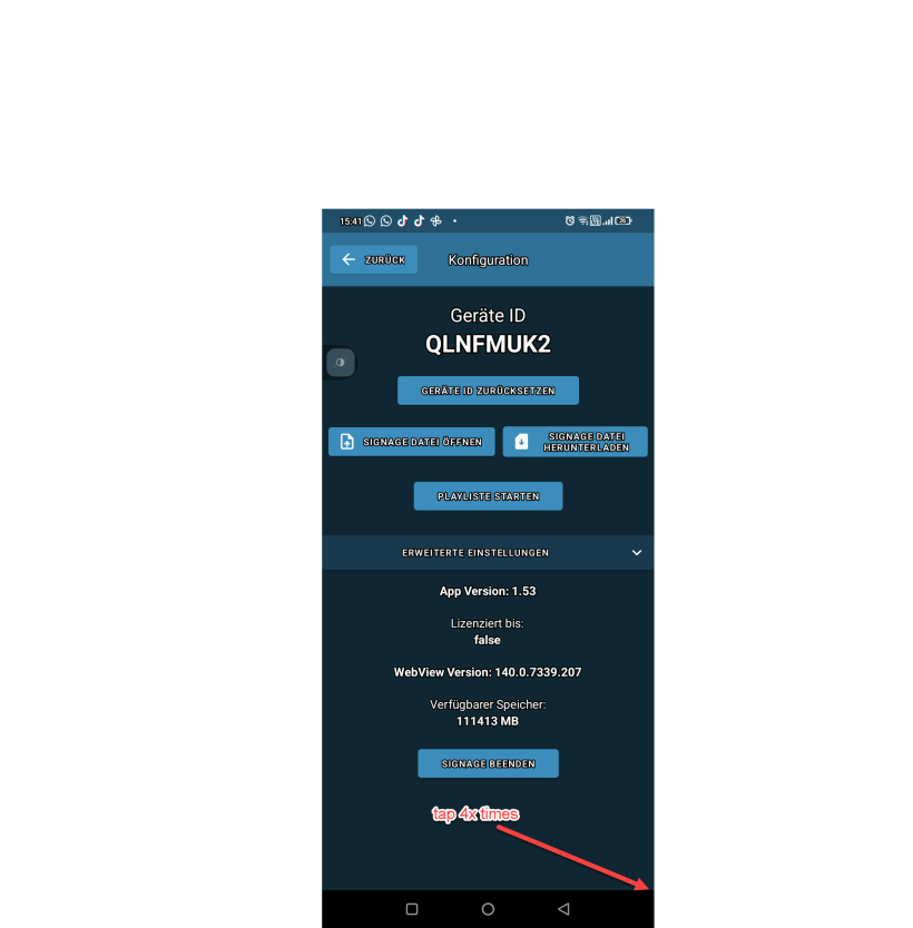 Falls beim ersten Start der App nicht die gewünschte Slideshow angezeigt wird, gelangen Sie durch viermaliges Tippen in die rechte untere Ecke zur Einstellungsseite.